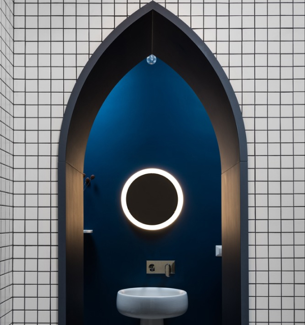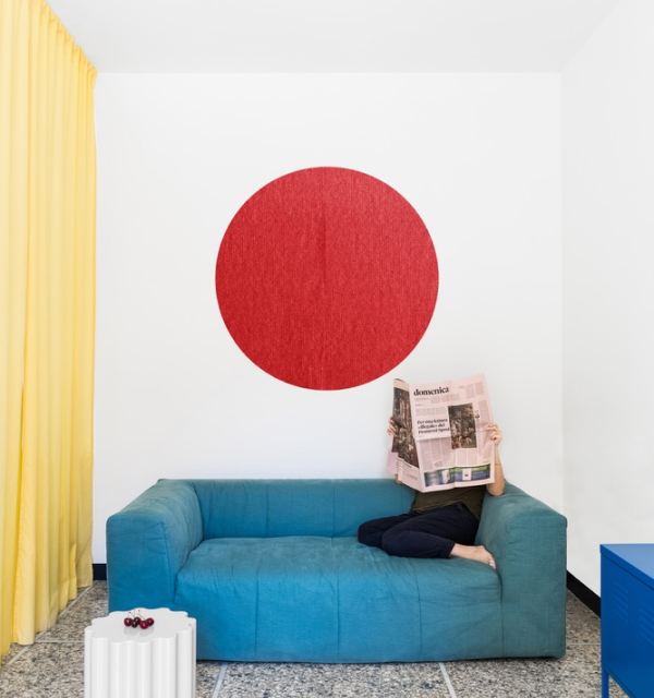 The project transforms a 1950s apartment into a surreal set where reality and fiction coexist in a quasi-theatrical scene. Thanks to the multidisciplinary approach of its two founders, the studio celebrates the graphic sign, in a project that fuses architecture, theatre, music, and illustration.