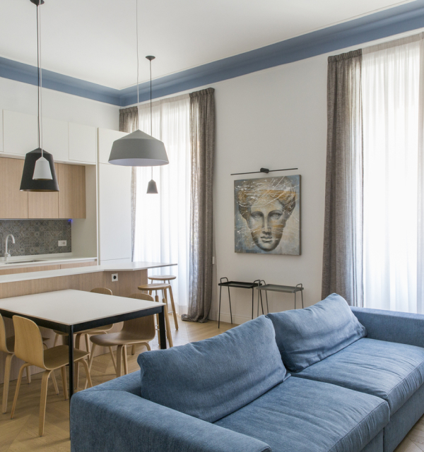 The limitation in the interventions, dictated also by the constructive characteristics of the apartment, risked to mitigate a project that instead found redemption precisely in the finishes and careful selection of furnishings, thus transforming the couple of young customers, totally unaware of the world of interior design, in passionate partners of the selection process of the various furnishings completions.